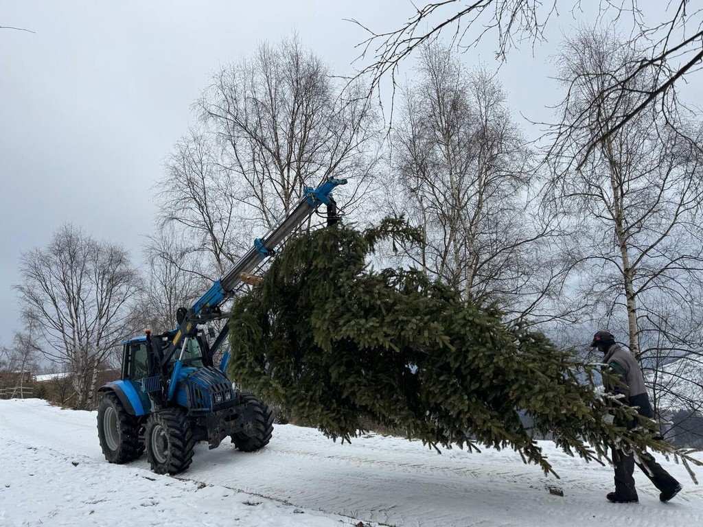 Il taglio e la preparazione del cimale hanno richiesto competenze tecniche e massima attenzione. Gli operatori forestali locali, insieme a un arboricoltore specializzato nella protezione della pianta durante il trasporto, hanno realizzato un lavoro accurato.