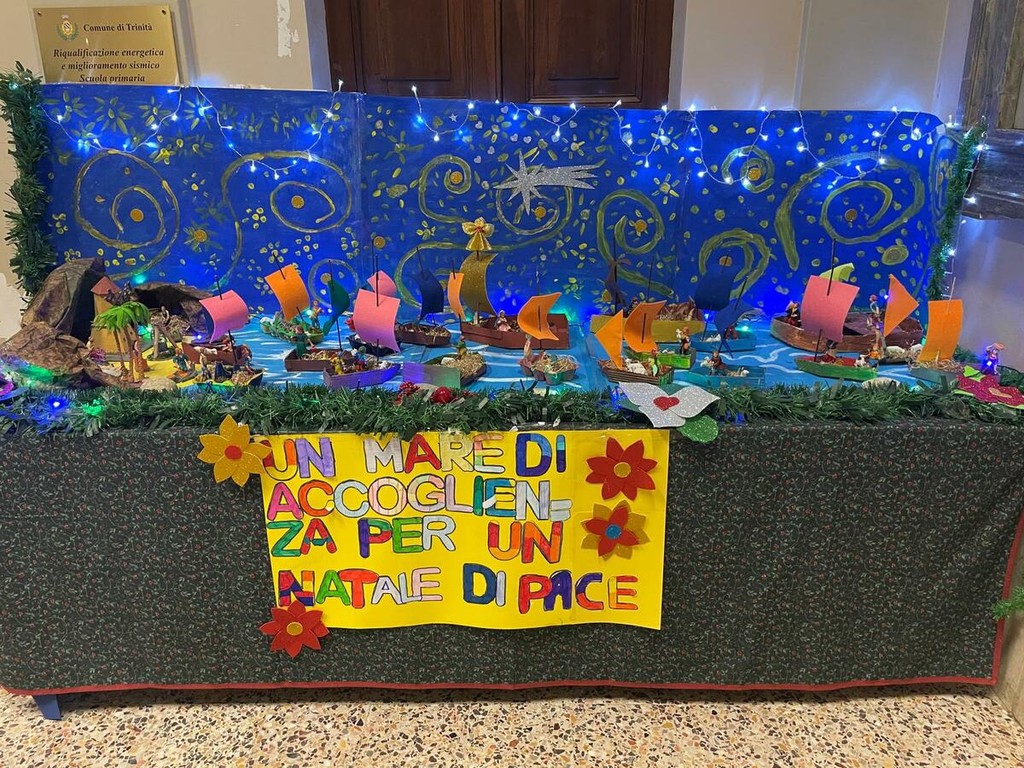 Acceso il grande albero in piazza Umberto I lo scorso 28 novembre, con le palline realizzate dai bimbi delle scuole e dai cittadini, ora è tempo di una serie di appuntamenti come tappa di avvicinamento al 25 dicembre e al nuovo anno 2026. Oltre agli allestimenti nel centro, significativo il presepe allestito dalla classe quinta della primaria di Trinità, che riconduce al tema della solidarietà e dell’ospitalità dei profughi in viaggio per mare verso una meta di salvezza. Il messaggio dei bambini: “Un mare di accoglienza per un Natale di pace”.