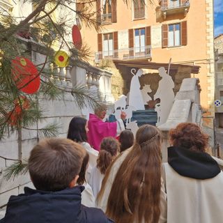 A Ceva i volontari allestiscono il presepe sulla scalinata del Duomo per portare un messaggio di pace
