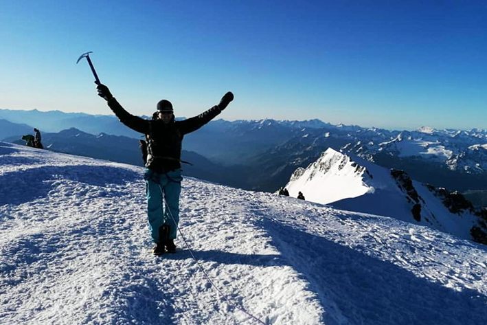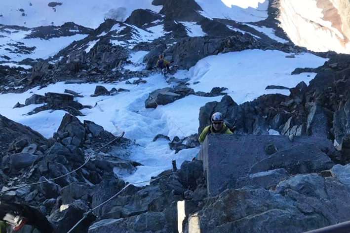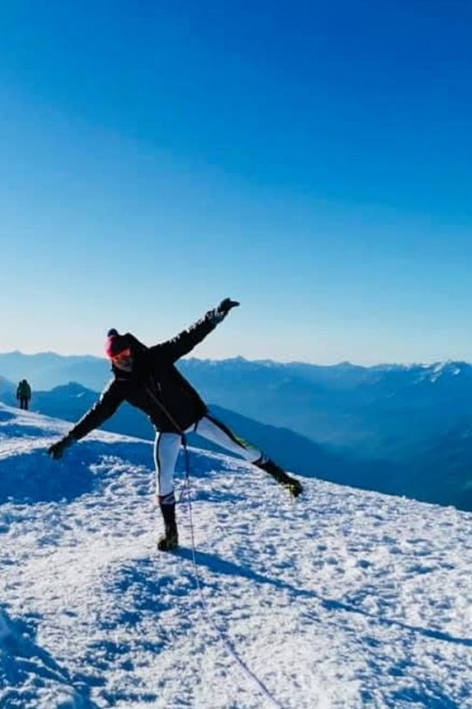 A 300 metri dalla vetta è accaduto ciò che nessuno prevede. La piccozza di André è scivolata in un canalone ed è sparita. Ci siamo ritrovati con un solo attrezzo. Tornare indietro era rischioso: con il sorgere del sole i crepacci iniziavano ad aprirsi e la discesa avrebbe richiesto ancora più attenzione. Abbiamo deciso di proseguire, passo dopo passo, muovendoci in sincronia, come se la montagna seguisse ogni nostro gesto. È stato un momento duro, quasi sospeso, ma lo abbiamo superato!