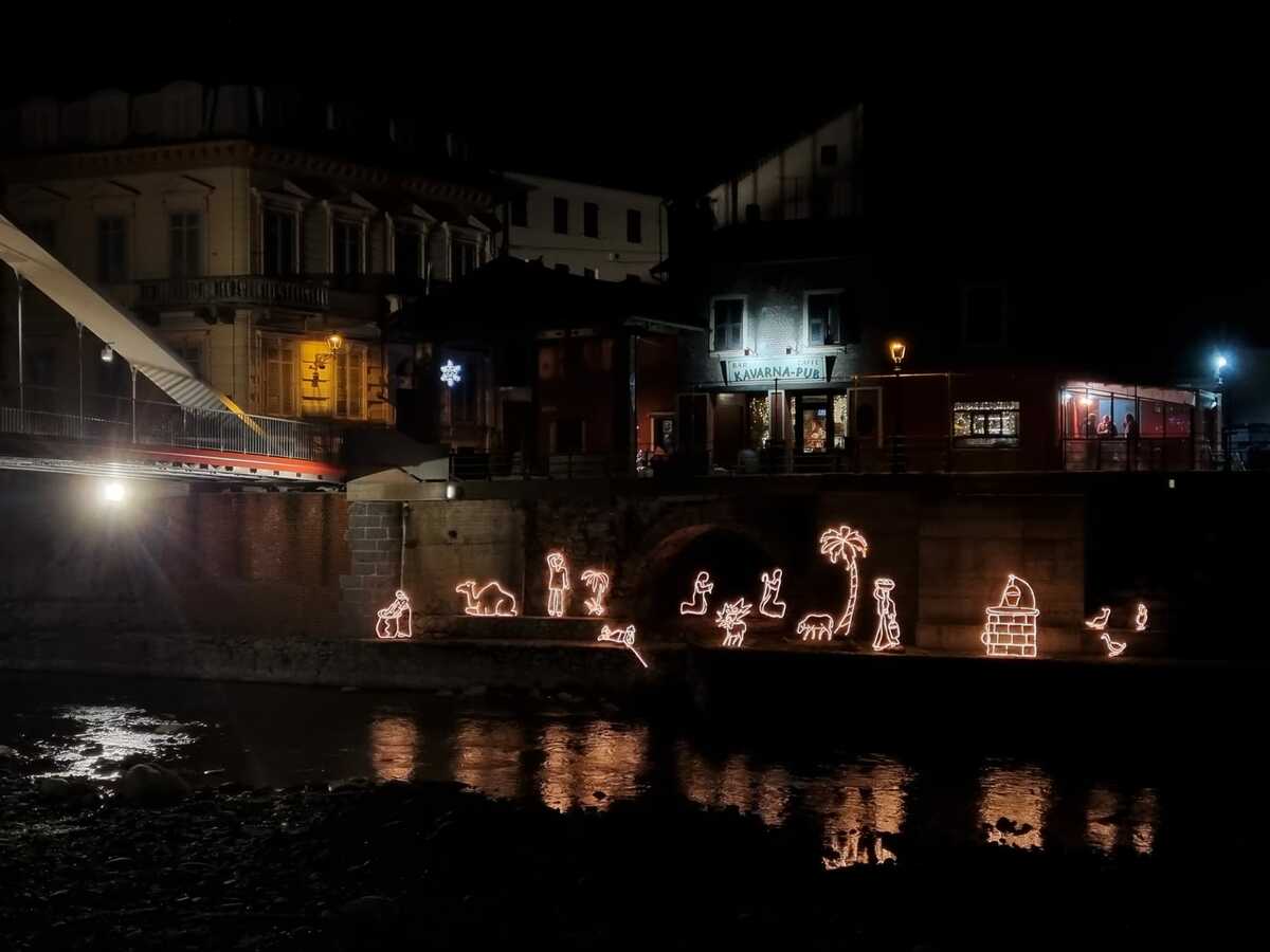 Dopo un anno di assenza, a causa dei lavori per l'installazione del nuovo ponte Odasso, Garessio torna a illuminarsi con lo splendido presepe sulle rive del Tanaro.