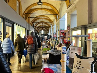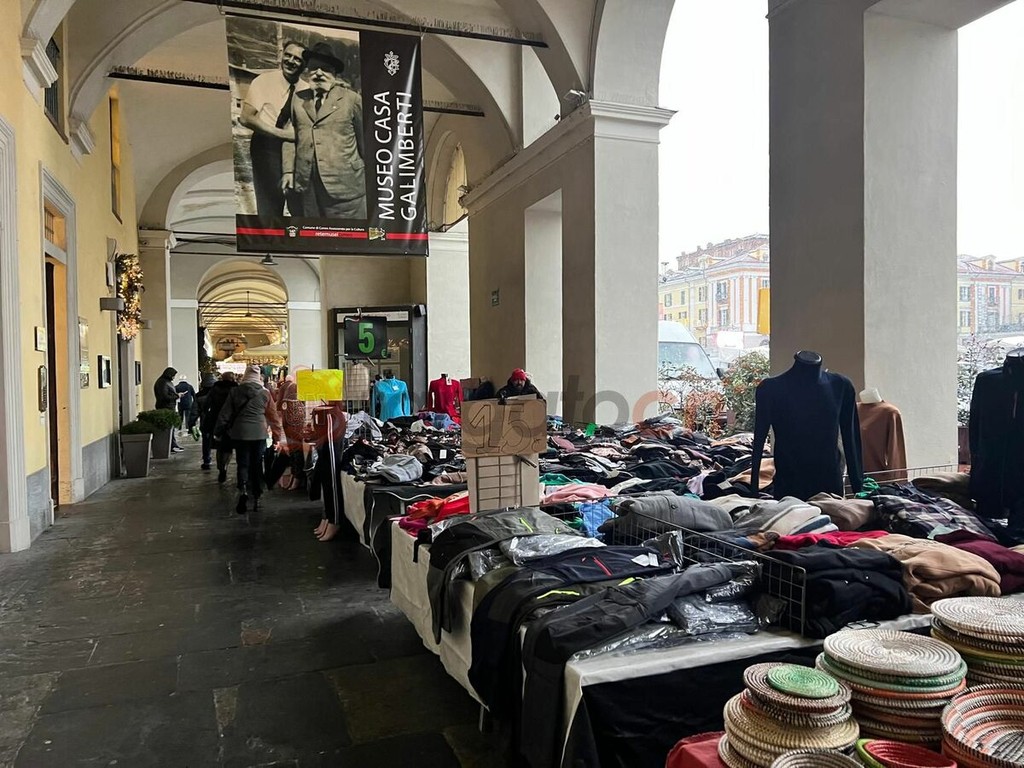 Sparuti banchi in piazza Galimberti, presenza più nutrita sotto i portici di via Roma.
