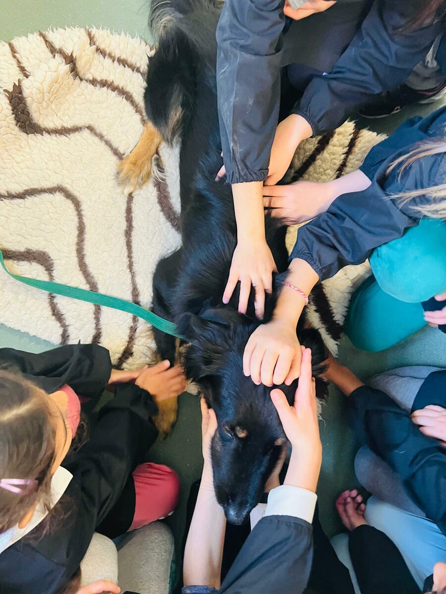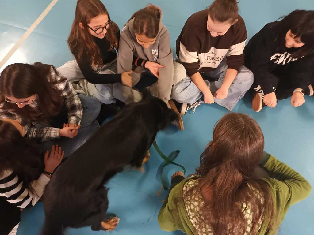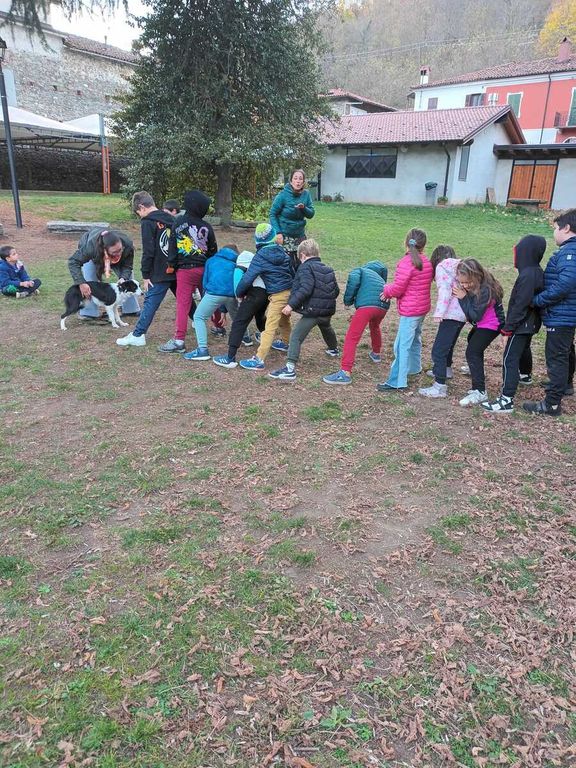 La seconda parte è stata dedicata alle attività con tre cani educati e addestrati per l’interazione con i più giovani: Drama, Baloo e Lara. In ogni incontro uno dei cani ha potuto interagire direttamente con gli studenti, che hanno sperimentato esercizi di ricerca sensoriale, piccoli percorsi di agilità e momenti di osservazione del linguaggio del cane, oltre a semplici attività di cura, come dare da mangiare all’animale. L’entusiasmo è stato generale, con un risultato particolarmente significativo: diversi studenti inizialmente timorosi o dichiaratamente spaventati dai cani sono riusciti, grazie al clima protetto dell’attività, ad avvicinarsi e interagire spontaneamente con tranquillità.