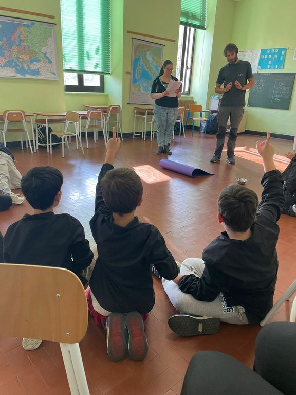 Nella prima parte i bambini e i ragazzi hanno partecipato a giochi, discussioni guidate e attività di gruppo pensate per portarli a mettersi nei panni del cane: che cosa lo fa sentire al sicuro, quali comportamenti lo mettono a disagio, quali sono i falsi miti più diffusi e come riconoscere situazioni problematiche. Ogni classe ha poi realizzato un cartellone con disegni e frasi create dagli stessi studenti, che rimarrà appeso in aula come promemoria del percorso svolto.