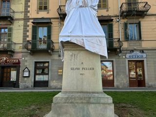 Eccola infatti, tornata a far parte dell'habitat cittadino, presenza fissa dal 1873, da quando grazie ad una colletta dei saluzzesi era stata eretta, plasmata dallo scultore Silvestro Simonetta, in segno di riconoscenza e di orgoglio per i natali saluzzesi dell’autore de "Le mie prigioni".