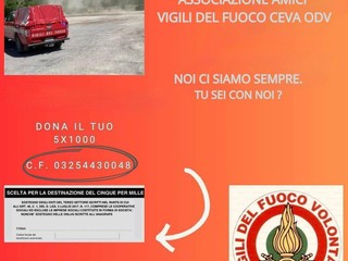 Si ricorda inoltre che, nella prossima dichiarazione dei redditi, per chi volesse è possibile destinare il 5x1000 all’associazione cebana “Amici dei vigili del fuoco Ceva”.