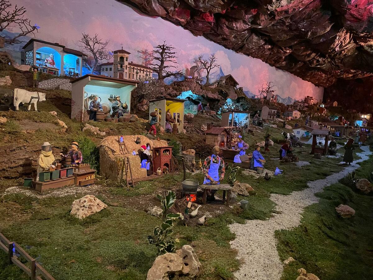 Di grande interesse e sempre molto apprezzata dai visitatori è la parte invernale che, con una realistica e copiosa nevicata, imbianca questa vallata animata da cervi, stambecchi, cinghiali e personaggi indaffarati a compiere le loro attività. Oggi il presepe copre una superficie di quasi 200 metri quadri e richiede circa 1200 ore di lavoro (a partire dalla seconda settimana di settembre).