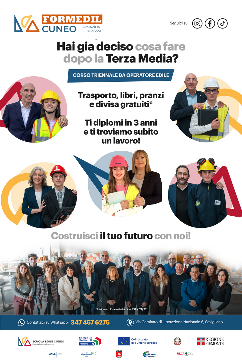 Con questa iniziativa, Formedil Cuneo conferma il proprio impegno nel promuovere un sistema di formazione che unisce competenze, sicurezza e crescita professionale, valorizzando il settore edile come scelta concreta e ricca di possibilità per il futuro dei giovani.