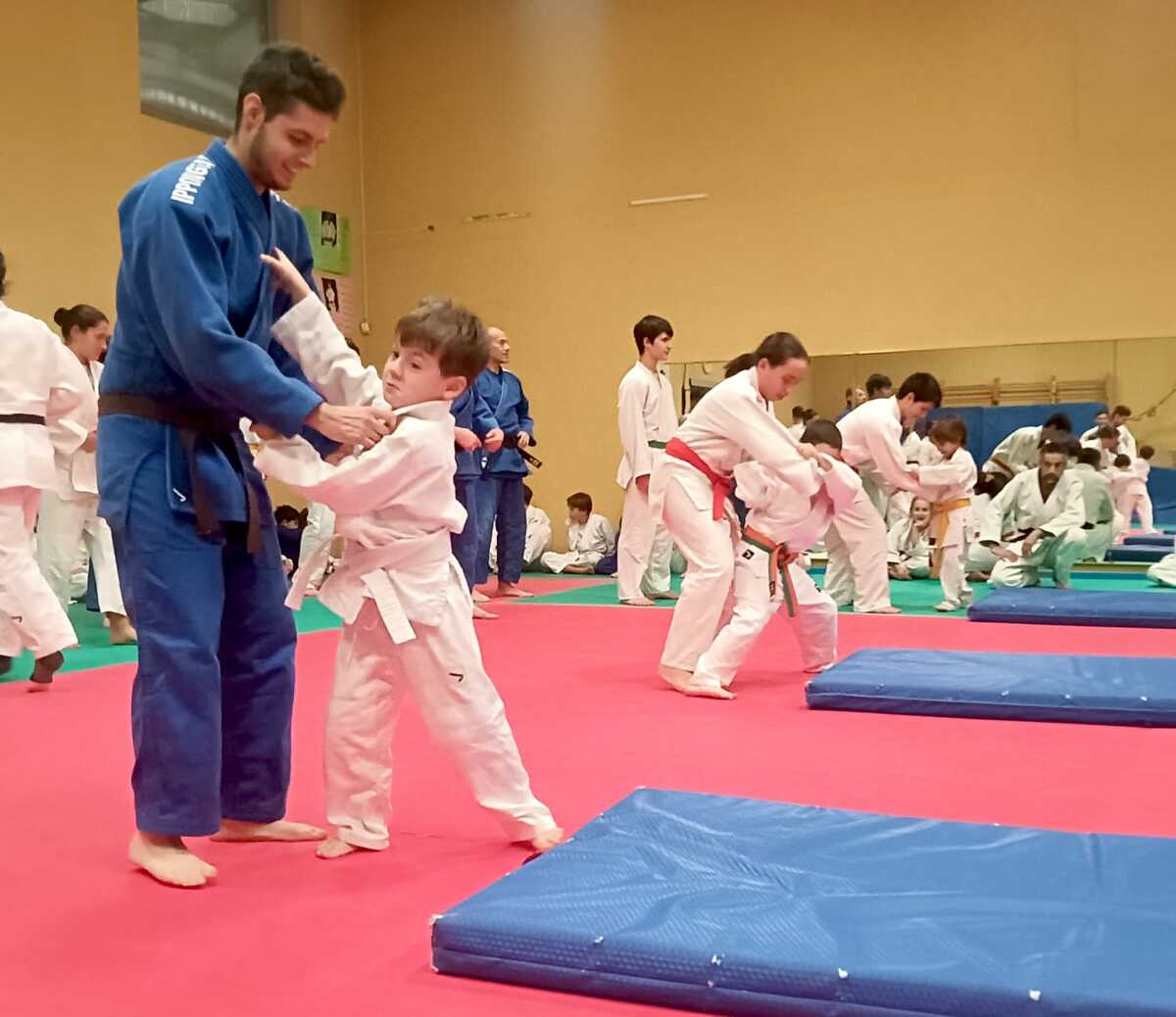 La serata è iniziata come un normale allenamento, con tutta la palestra insieme. Dopo il riscaldamento, si è lavorato su coordinazione, cadute avanti e indietro, esercizi motori adattati alle diverse età e livelli, fino ad arrivare a qualche combattimento finale. Un allenamento pensato per coinvolgere tutti, dai più piccoli ai più grandi, mantenendo lo spirito educativo e formativo che da sempre contraddistingue il Kodokan.