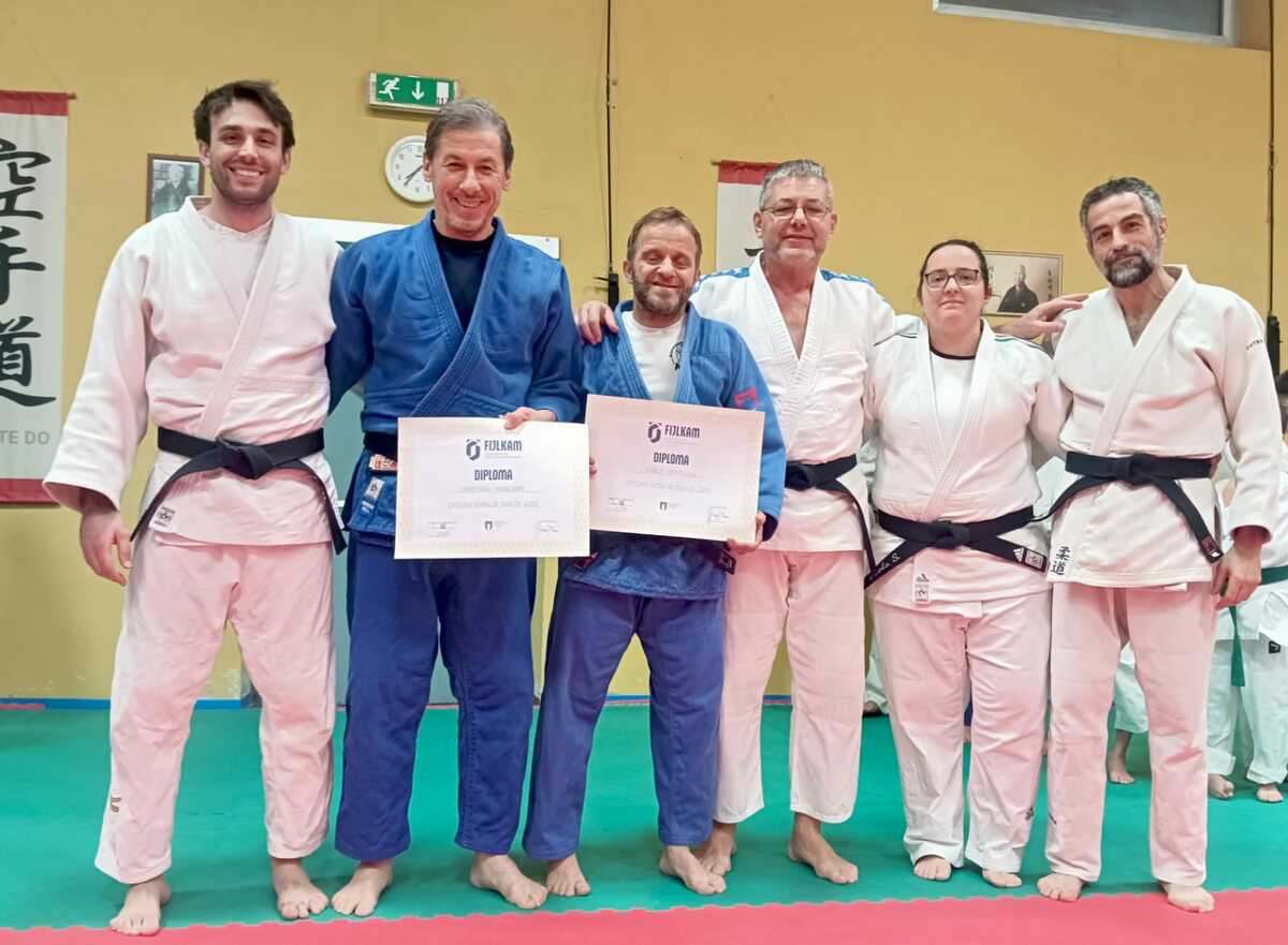 Grande soddisfazione anche per i riconoscimenti ufficiali rilasciati dalla FIJLKAM: all’istruttore e vicepresidente Paolo Bertaina è stato conferito il grado di cintura nera 4° Dan, mentre al maestro e presidente Cristiano Naglieri il prestigioso grado di cintura nera 5° Dan.