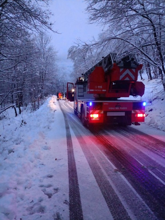 Continuano anche stasera gli interventi dei vigili del fuoco del Comando provinciale di Cuneo impegnati nella rimozione di alberi caduti per il peso della neve su strade secondarie, che impediscono la regolare viabilità.