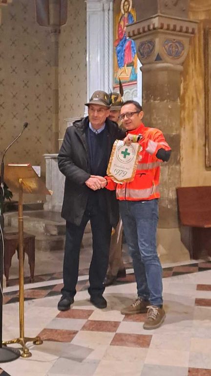 Sabato 20 dicembre, nel corso della messa annuale fatta celebrare nella chiesa di Sant’Agostino dalla Croce Verde di Saluzzo, il presidente della Sezione Ana “Monviso” Enzo Desco ha consegnato nelle mani di Michele Isoardi, presidente dell’associazione dí volontari per il soccorso saluzzese, un assegno di mille euro.