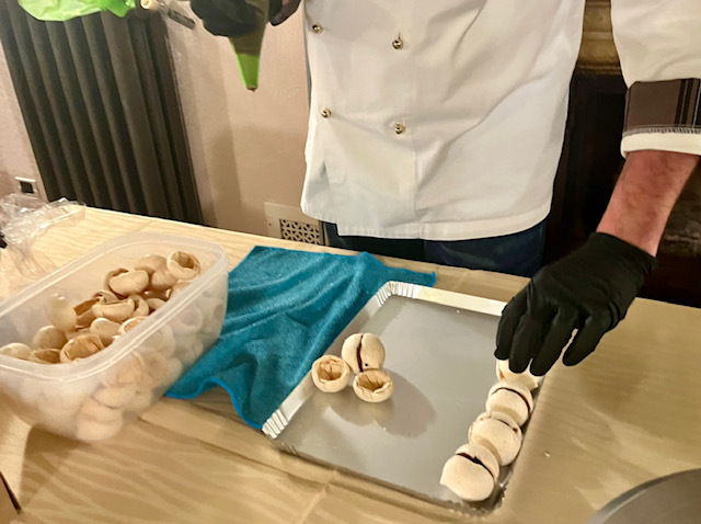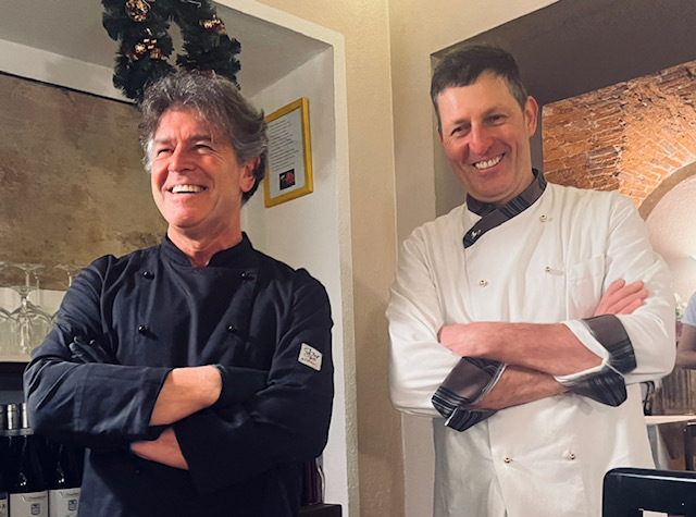 Presso il ristorante Dragonero, altro locale storico della cittadina che custodisce la storia ed i saperi della famiglia Vorgnano, le due tipicità culinarie del nostro territorio, quella salata e quella dolce, si sono incontrate. Il risultato è stato un connubio unico nel suo genere: mentre si sono assaporate le prelibatezze senza tempo dello chef Ezio Vorgnano, si è potuto assistere in diretta alla preparazione di alcuni dolci tipici da parte del rinomato pasticcere Daniele Cucchietti.