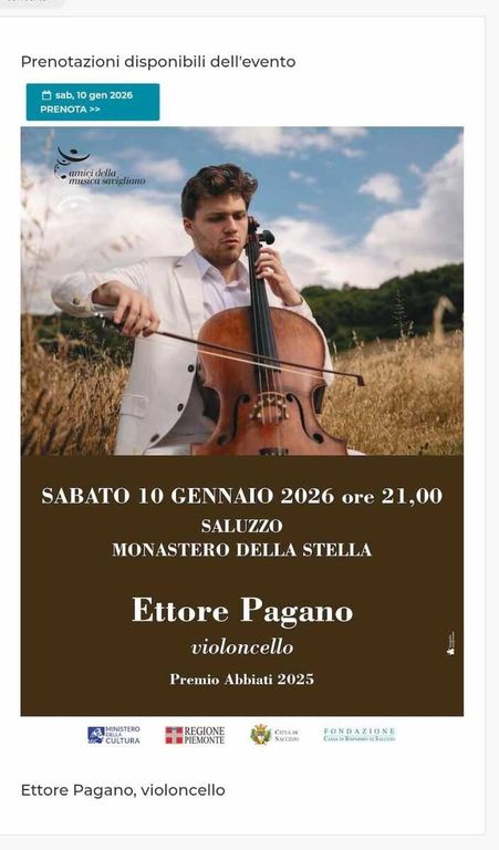 Sabato 10 gennaio alle ore 21, nella suggestiva struttura del Monastero della Stella di Saluzzo, si terrà un concerto di straordinario rilievo che vedrà protagonista Ettore Pagano, vincitore del Premio Abbiati 2025 come “miglior solista”, massimo riconoscimento della Critica Musicale Italiana.
