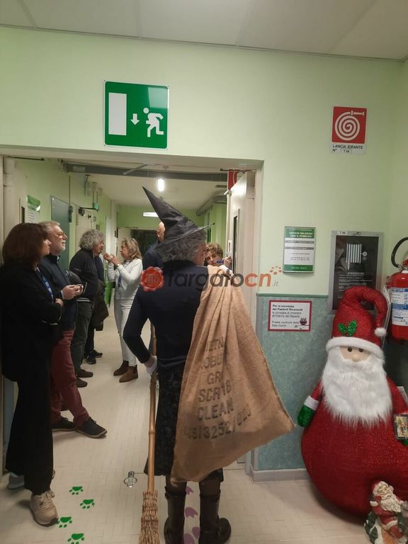 Questa mattina, in sella alla sua scopa, la Befana Silvio, protagonista dell'iniziativa organizzata dall'ASI della Scuderia Veltro e dal SIAP Cuneo (Sindacato Italiano Appartenenti Polizia) con l'ABIO Cuneo, è atterrata nel reparto di pediatria con un sacco pieno non di carbone, ma di splendidi doni.