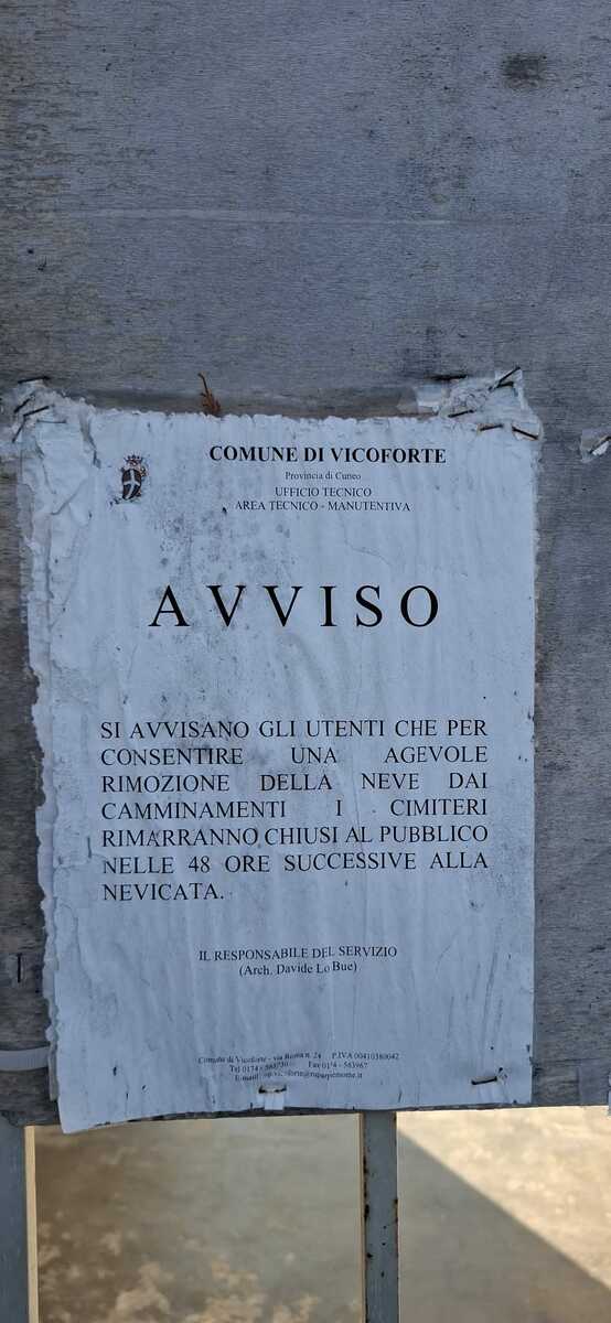 Neve e e ghiaccio ostacolano l'accesso ai cimiteri nel Comune di Vicoforte.