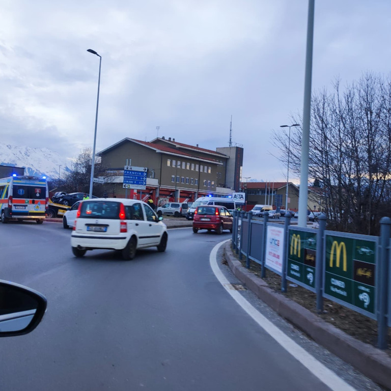 Traffico bloccato in corso Alcide De Gasperi a Cuneo, davanti alla caserma dei vigili del fuoco, in seguito ad un tamponamento.