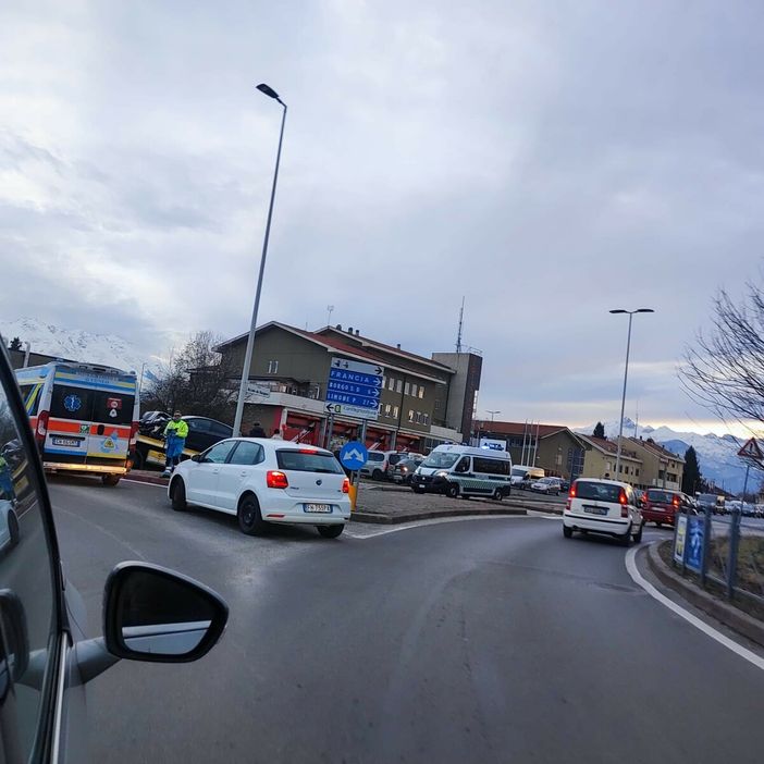 Traffico bloccato in corso Alcide De Gasperi a Cuneo, davanti alla caserma dei vigili del fuoco, in seguito ad un tamponamento.