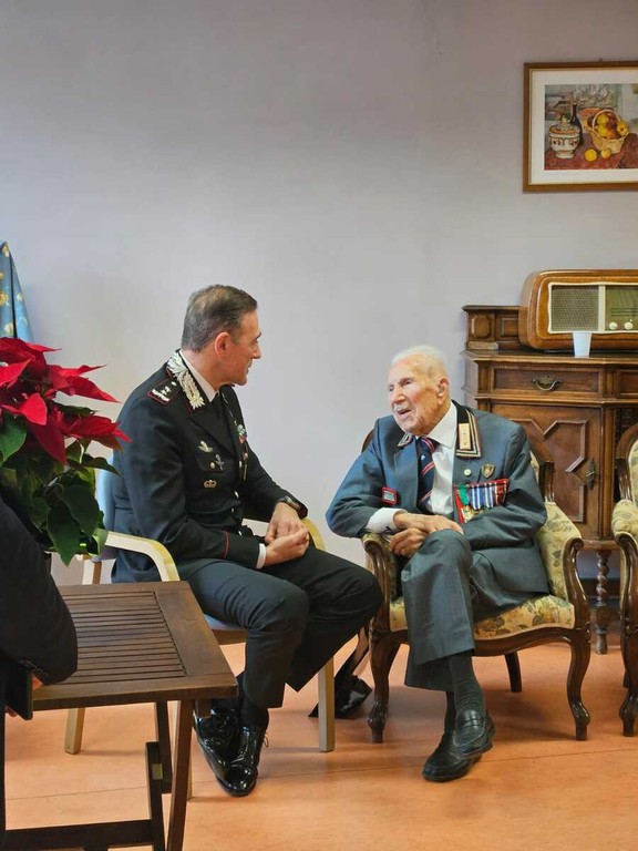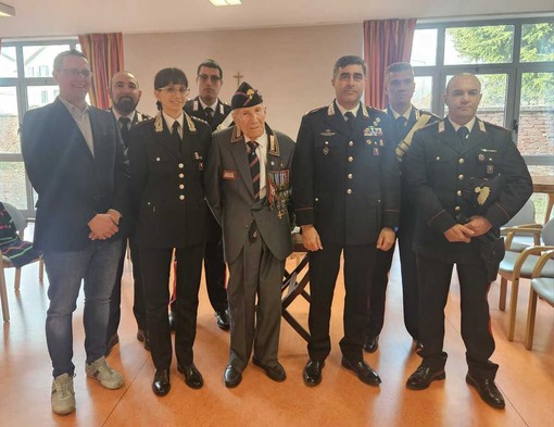 Quaglia, Carabiniere Reale, ospite dell'Opera Pia Garelli di Garessio, ha ricevuto la visita del Generale di divisione Andrea Paterna, comandante della Legione Piemonte e Valle d'Aosta e del generale Marcello Bergamini, ispettore regionale ANC, che gli hanno consegnato l'attestato di lode per la lunga e preziosa continuità di servizio nell'Arma e nell'ANC, firmato dal Generale C.A. Libero Lo Sardo.
