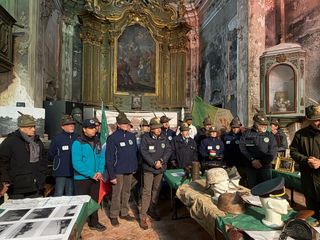 Il momento centrale si è spostato poi nella splendida cornice della Chiesa di Santa Maria, dove è stata inaugurata la mostra del Cappello Alpino e l’esposizione di documenti e cimeli, curata da Giorgio Gonella e dal Memoriale della Cuneense di Cuneo, rappresentato dal presidente Aldo Meinero.