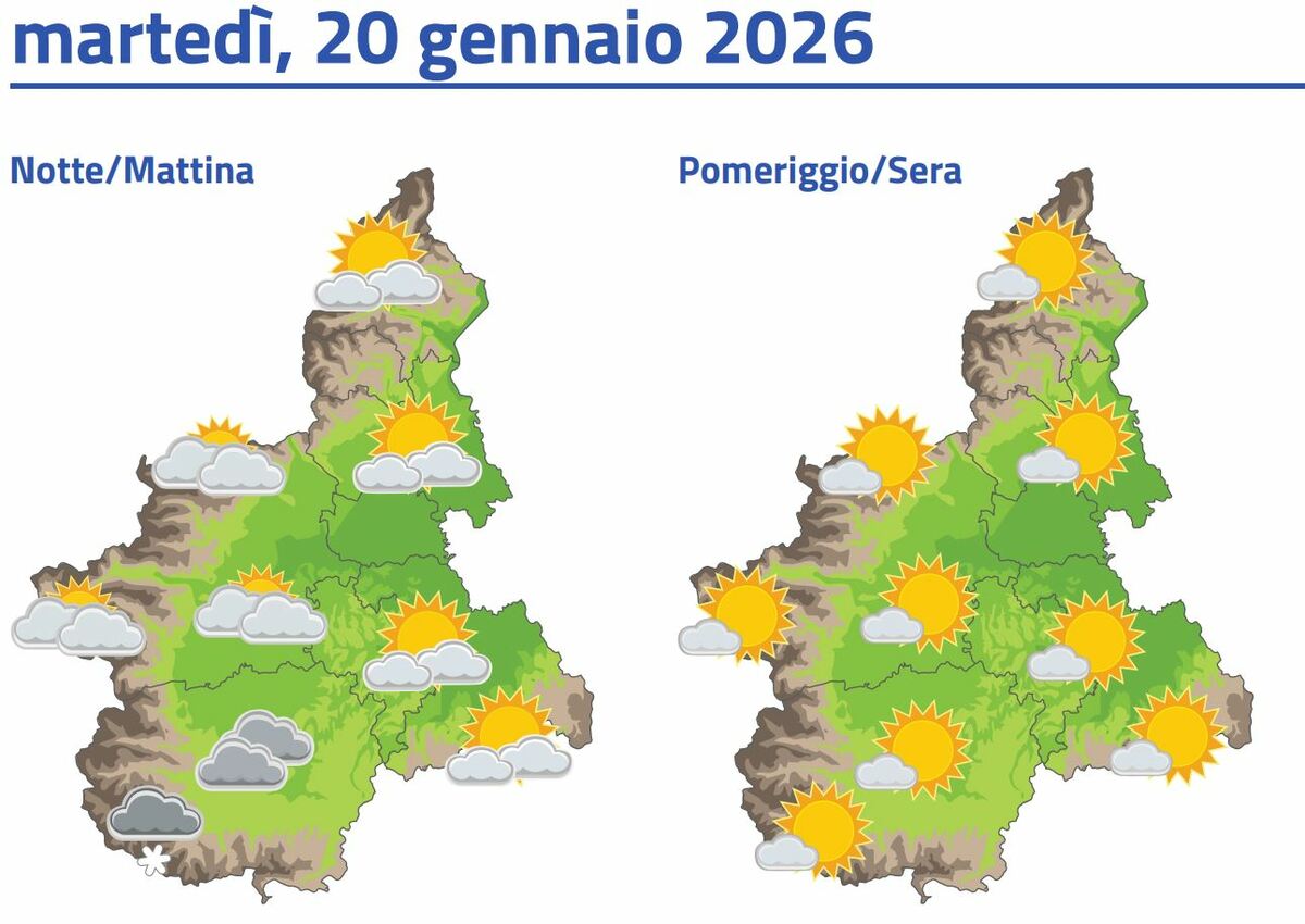 La situazione è destinata a migliorare a partire da martedì 20 gennaio, quando le precipitazioni residue al mattino sul Cuneese lasceranno spazio a un pomeriggio soleggiato. Mercoledì 21 gennaio il cielo sarà sereno su tutta la regione, con possibili locali foschie mattutine e precipitazioni assenti.