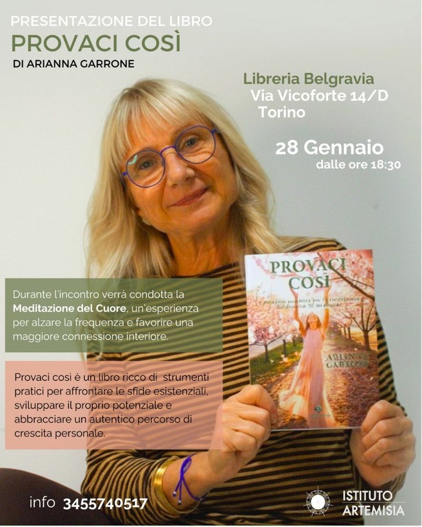 La presentazione di Provaci così, edito da Lisianthus Editore (www.lisianthuseditore.com), si terrà mercoledì 28 gennaio 2026 alle ore 18:30 presso la Libreria Belgravia, in via Vicoforte 14/D, Torino.