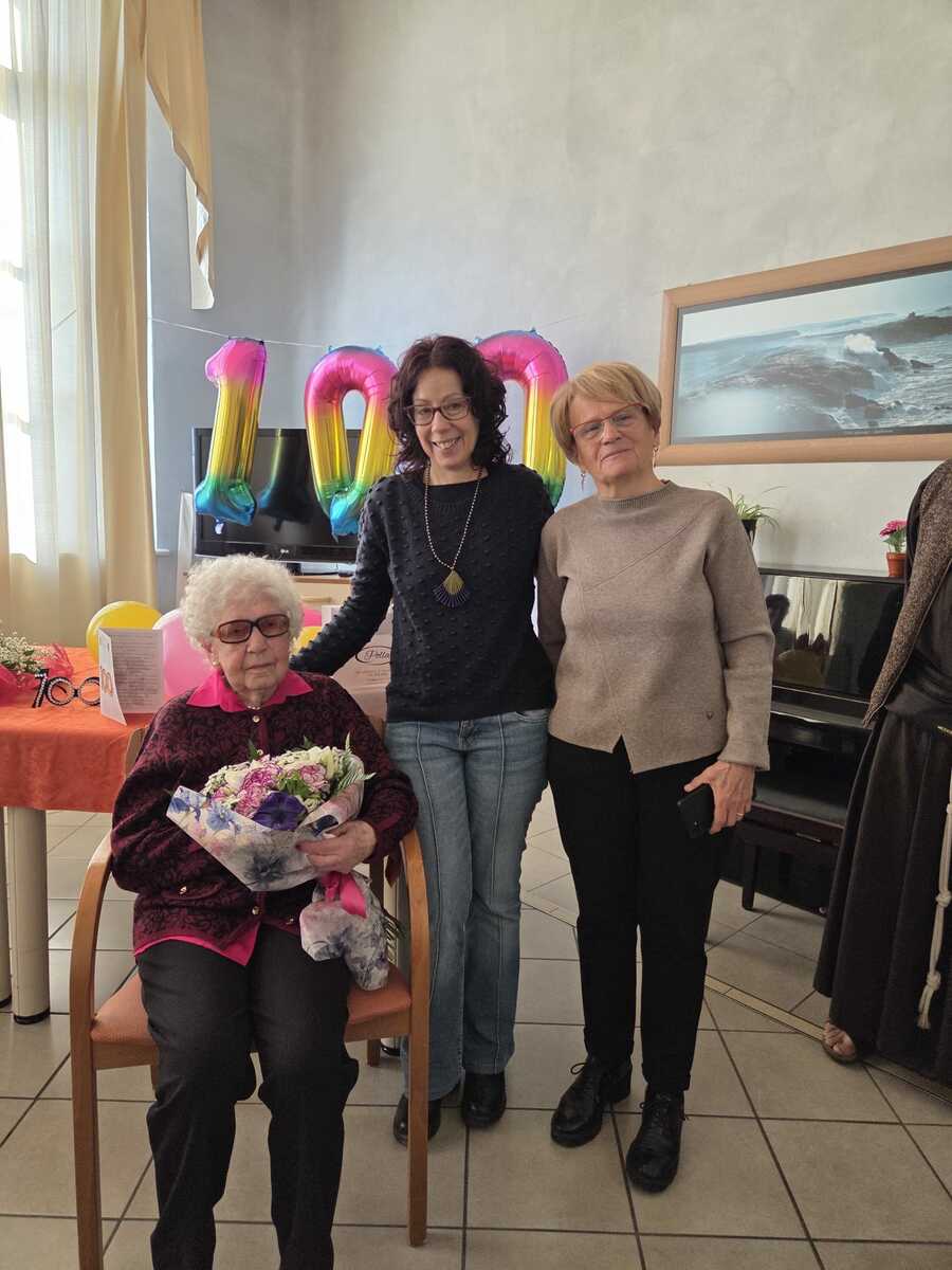 Ave ha compiuto ieri, mercoledì 21 gennaio, 100 anni, al Tapparelli di Saluzzo con una festa di compleanno che ha coinvolto ospiti, Cda, parenti. A festeggiarla anche la presidente dell'Ente Tiziana Drago e padre Maurizio Piazza, cappellano della Residenza, mentre a portare gli auguri dell’Amministrazione è stata l’assessore Fiammetta Rosso.