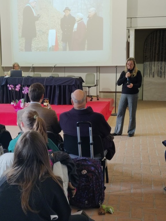 Dopo una breve sosta accanto alla targa e all’albero che il Comune di Govone collocò nel parco del castello nel 2017, studenti e ospiti si sono ritrovati nel salone “La Serra”, dove sono state evocate le terribili giornate delle persecuzioni naziste contro gli ebrei e ricordata la bellissima figura di Michelina Saracco, proprietaria con il marito di un servizio di autobus, che con grande coraggio salvò in quei giorni dalla deportazione alcuni membri della famiglia di Vittorio Dan Segre, nascondendoli nella propria abitazione.