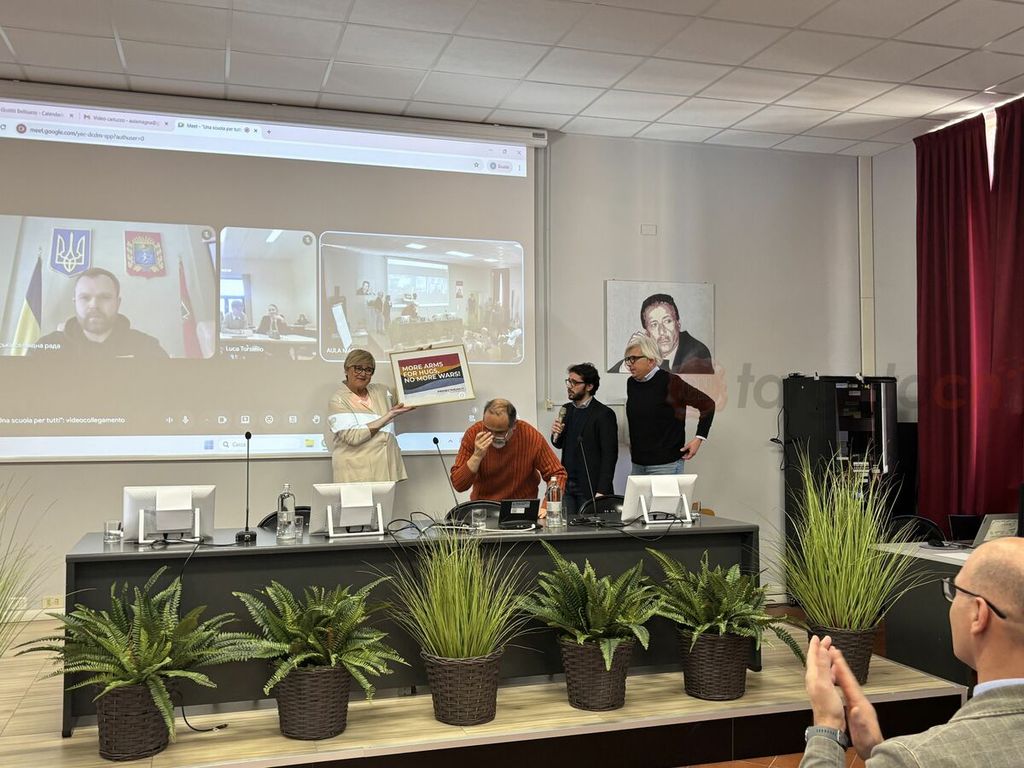 In videocollegamento il sindaco di ucraino, Anton Dotsenko che ha ringraziato tutti per la solidarietà: "Grazie a voi non ci sentiamo così soli".