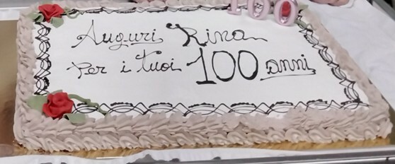 Tra le musiche della Crus Rus Band, le canzoni e i balli nella sala addobbata è stata tagliata la magnifica torta con la dedica dei 100 anni di Rina. Dopo gli auguri ed i fiori portati del Sindaco con la fascia tricolore e dalla giunta comunale, è stata narrata la storia della giovane Rina operata a ventidue anni di appendicectomia proprio in questa struttura, un tempo ospedaletto, asilo e ricovero del paese, che adesso la accoglie insieme ad una trentina di ospiti.