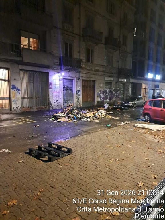 Le strade della Circoscrizione 7 portano ancora impresse i segni degli assalti, soprattutto a ridosso dell'ex centro sociale di corso Regina Margherita 47. I bidoni dell'immondizia sono ancora chiusi con il lucchetto, con accanto depositati i sacchetti con i rifiuti. Ma le vie in molti punti sono lastricate da pezzi di bottiglie di birra, probabilmente lanciate durante gli attacchi.