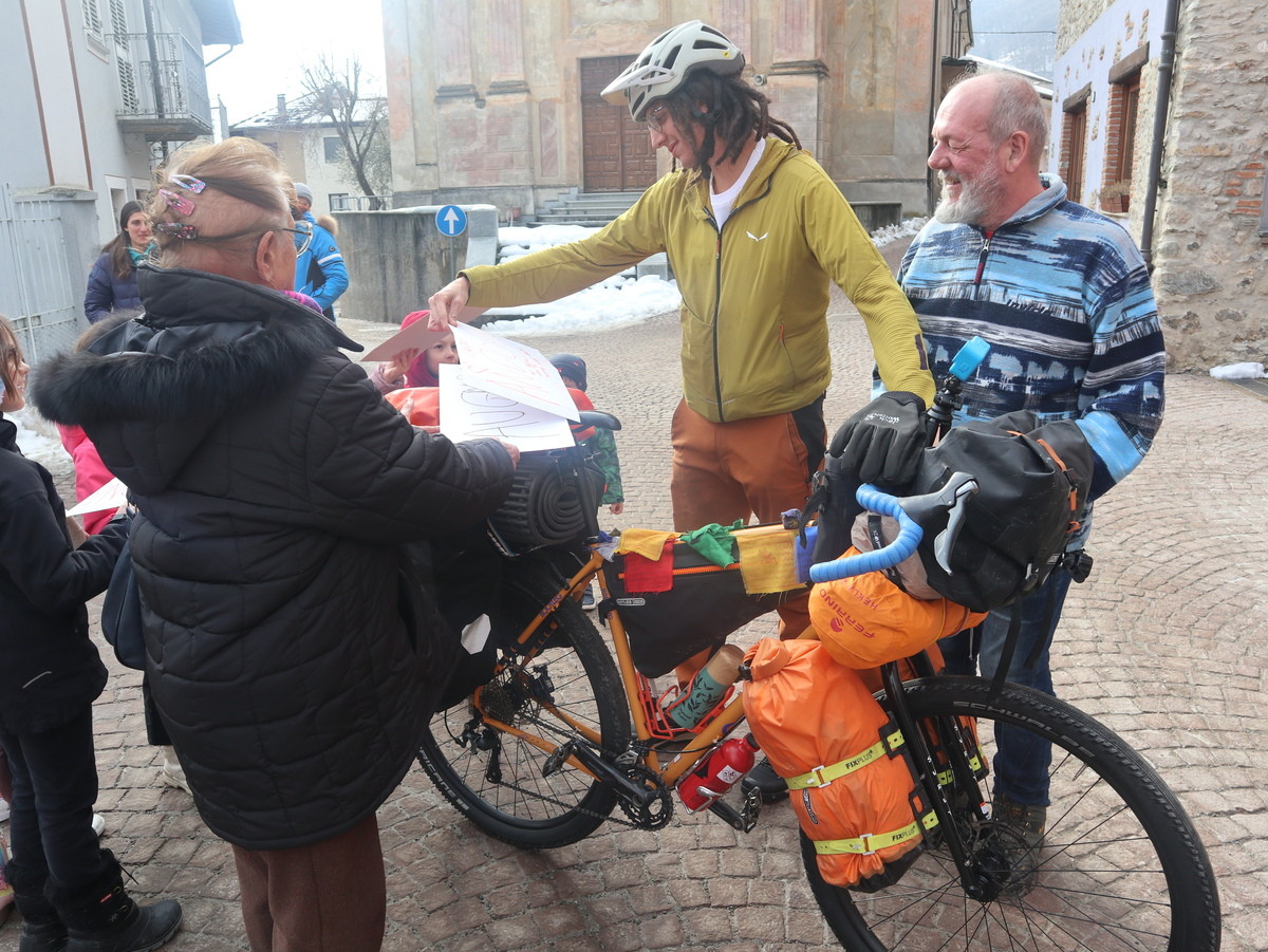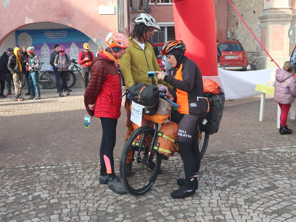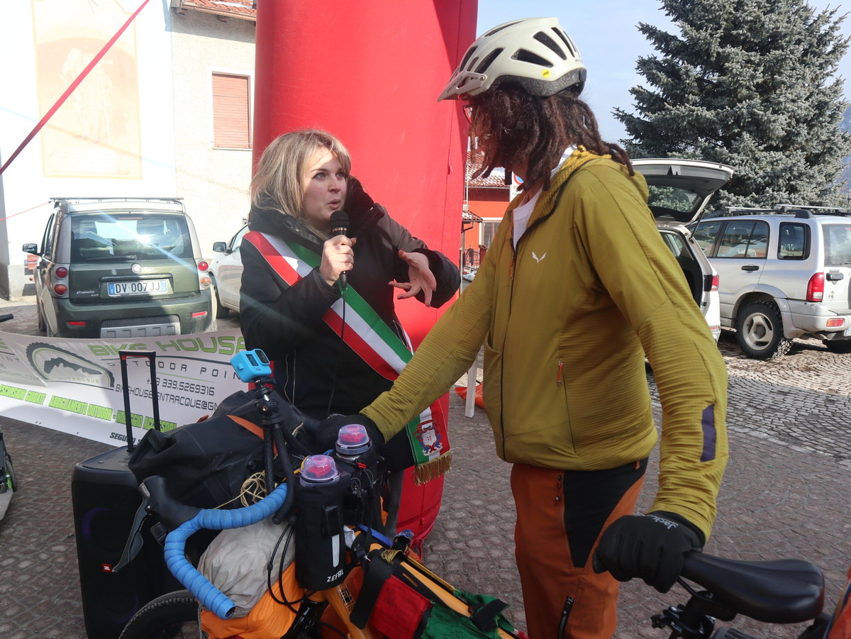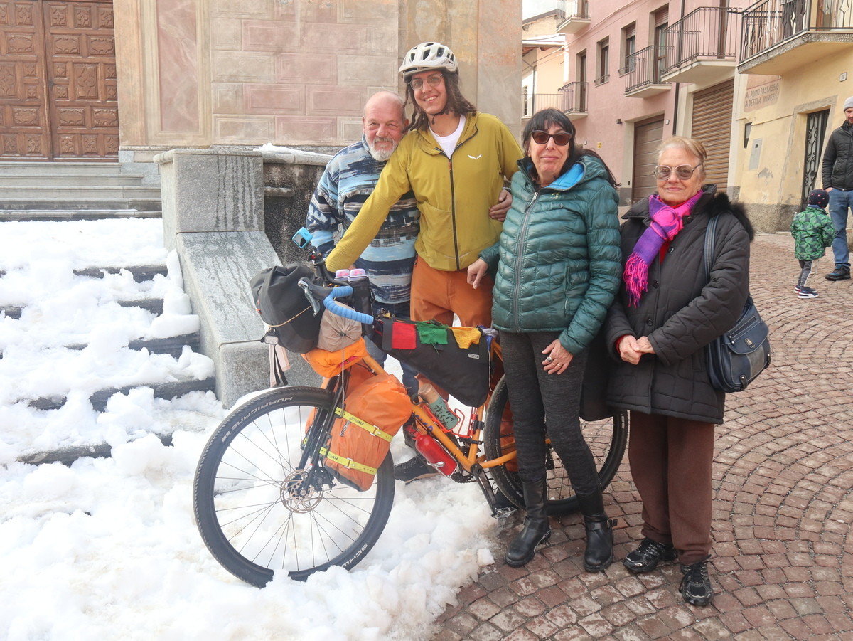 Il momento partecipativo è stato anche salutato dalla vice sindaca di Valdieri Sharon Giraudo in una ricorrenza che rimarrà nella storia del piccolo paese di soli 300 abitanti. Con lei anche amici, simpatizzanti e curiosi, pronti a sostenere Simone nel lungo e duro percorso per il mondo con attrezzature tecniche adeguate, vestiario idoneo e un fornello scaldavivande per alimentarsi (e in luoghi dalle temperature che potranno variare dai -20 ai 40 gradi), bivaccando in tenda e ricevendo anche l’ospitalità di persone incontrate durante il tragitto. Per tutto il periodo la gente nel mondo compenserà i nostalgici momenti senza la famiglia.