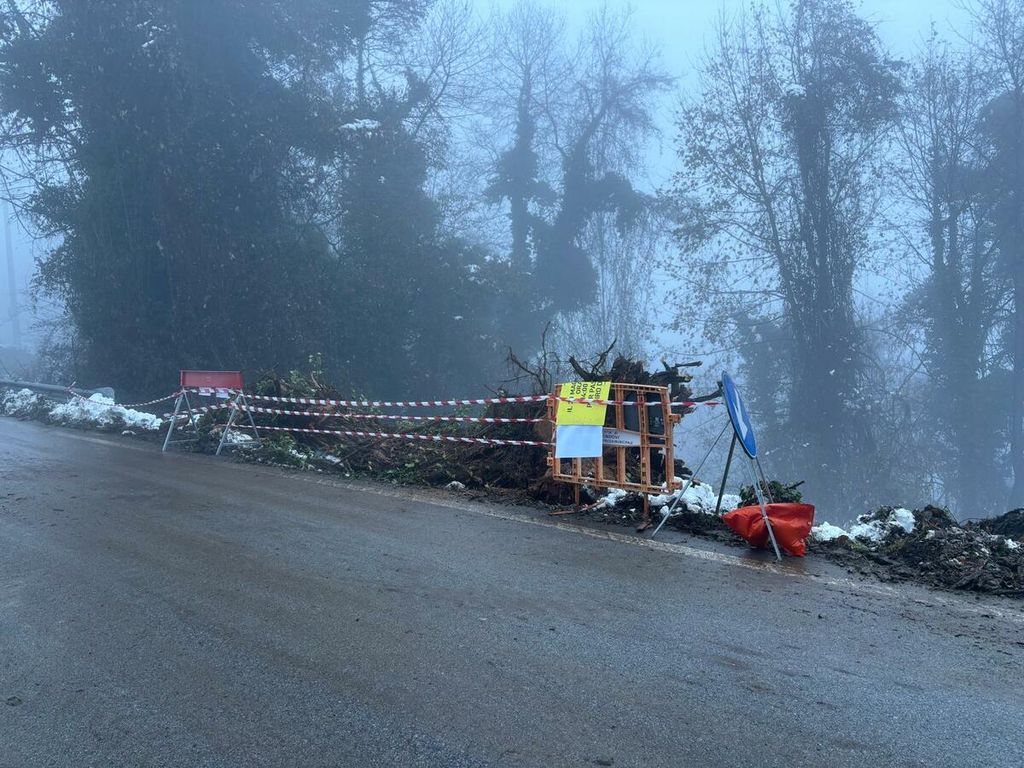 Nella caduta, causata dalla neve, l’albero ha tranciato alcuni fili elettrici con conseguente interruzione della correte per diverse utente.
