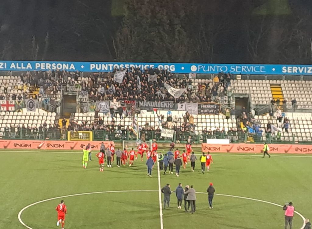 I “mandrogni” hanno terminato il primo tempo avanti 2-0, grazie alle reti del solito Diop (29’) e di Cargiolli (45’+1). A inizio ripresa i biancorossi hanno riaperto il match con il rigore di Federico Nacci (47’). Infine gli alessandrini hanno chiuso la pratica con il sigillo di Morganti (67’).