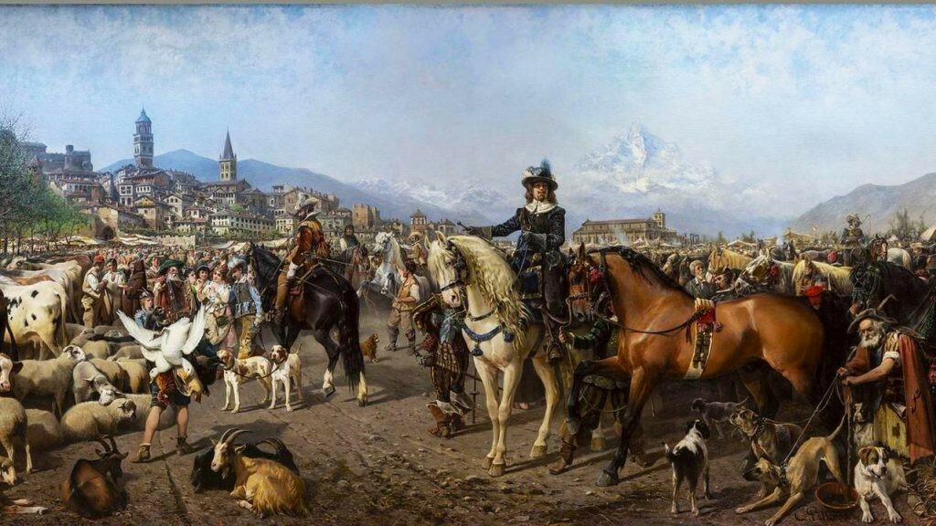 Era stata conservata per anni prima nei magazzini e, dopo il restauro, nel percorso espositivo della Gam di Torino, donata al museo dal barone Ignazio Weil-Weiss. Carlo Pittara l'aveva dipinta nel 1880, rappresentando in 32 metri quadrati ( è alta 4 metri e larga 8) il mercato di Saluzzo in un immaginario 1600.