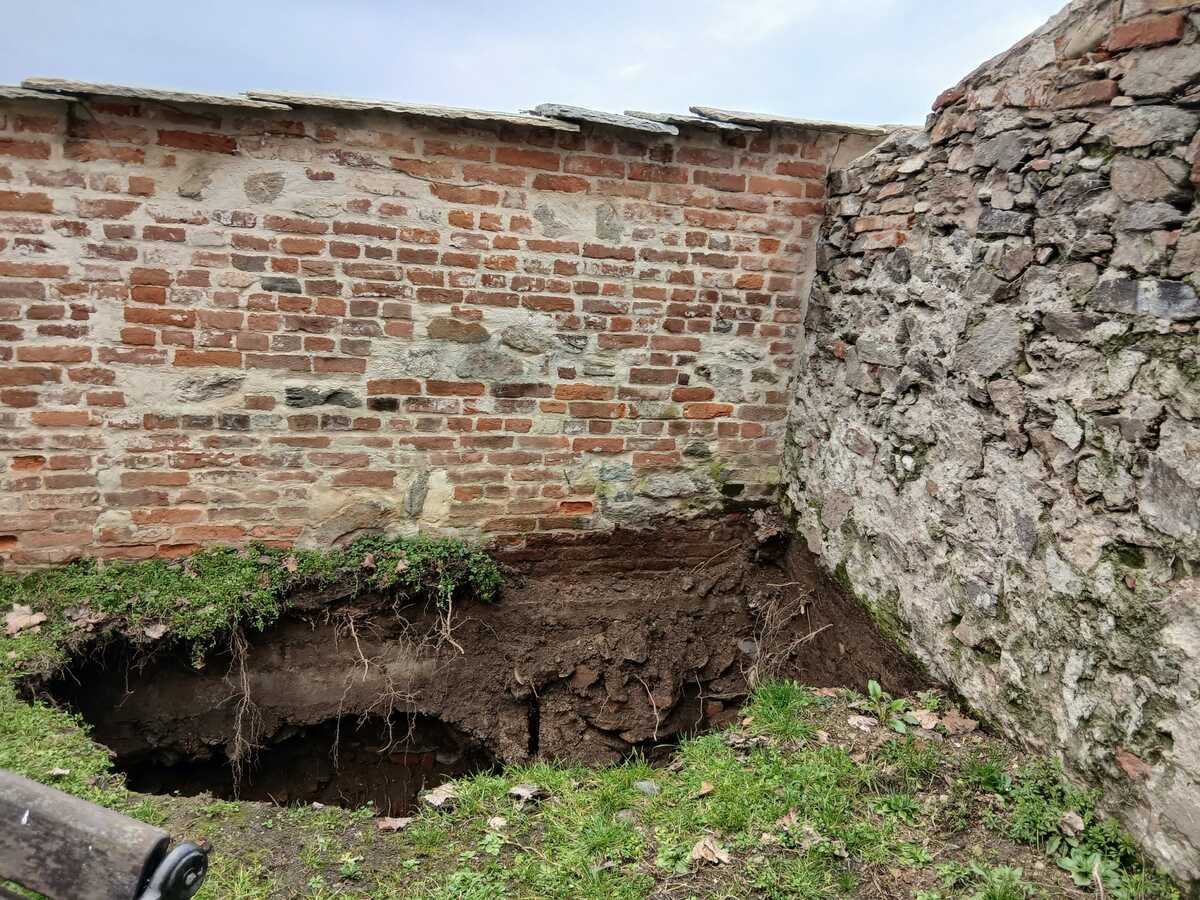 Uno smottamento, per il quale sono intervenuti, ieri mattina, i vigili del fuoco del Distaccamento di Saluzzo, che si è verificato all'angolo tra i due muretti, in corrispondenza dell’antico vicolo sottostante, rifunzionalizzato al servizio del nuovo complesso residenziale, ex convento delle Carmelitane.