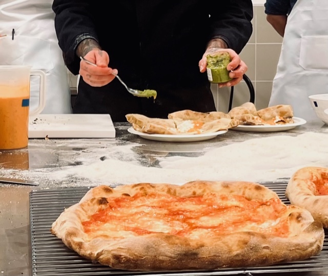 Camici indossati e tanto entusiasmo. A gruppi i partecipanti si sono cimentati nella preparazione di varie dipologie di pizza, dalla contemporanea al padellino passando anche per la pizza fritta, la preparazione anche di focacce con differenti farine, nonché valorizzazione dei topping e delle materie prime. La parte più bella? Naturalmente l’assaggio!