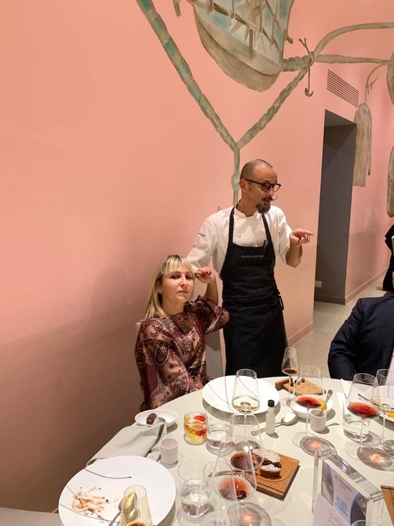 Il presidente Bruno Ceretto ha offerto la location, l’esclusivo ristorante "Piazza Duomo". Lo chef tristellato Enrico Crippa ha sacrificato la sua giornata di riposo, così come tutto il suo staff, e messo a disposizione i due eccezionali esemplari di Tuber Magnatum Pico (750 grammi il peso complessivo) che appena il giorno prima aveva ricevuto in dono da Andrea Rossano della Tartufingros, insieme al premio "Tartufo dell’Anno" attribuitogli dalla Fiera Regionale del Tartufo di Vezza d’Alba. I vini invece li hanno donati quattro cantine – Giovanni Almondo di Montà, l’azienda agricola Matteo Correggia di Canale, Vietti di Castiglione Falletto e La Spinetta di Castagnole Lanze –, mentre la Ceretto Terroir Distribuzione ha offerto un Dom Px Toro Albalà Gines Liebana, un vino spagnolo nell’introvabile annata 1937, l’anno di nascita dello stesso Ceretto.