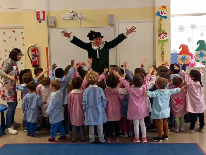 Quest’anno Giuanin Pajalunga ha fatto il suo ritorno a Busca, dai bimbi della scuola dell’infanzia. Lunedì ha fatto una sorpresa anche ai bimbi della scuola dell’infanzia di Caraglio e con Rita Barale di “Una chitarra, 100 illusioni” andrà a portare la sua ventata di buonumore alle strutture della Val Vermenagnia Grana e Gesso, mentre con con l’artista poliedrica, menestrella cantastorie Valeria Arpino sarà alle scuole droneresi e alle strutture della Valle Maira.