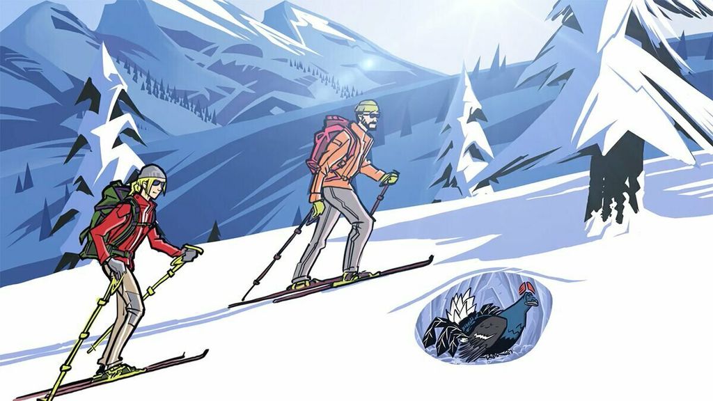 Se per gli amanti di ciaspole e sci con pelli di foca la neve è divertimento e sfida, per il fagiano di monte, invece, è un rifugio vitale. Durante l'inverno, questo uccello scava dei veri e propri "igloo" sotto la coltre bianca, nei pressi dei cespugli di rododendro, per proteggersi dalle temperature gelide e risparmiare energia. In questi rifugi trascorre l'intera notte e gran parte della giornata, uscendo solo per nutrirsi.