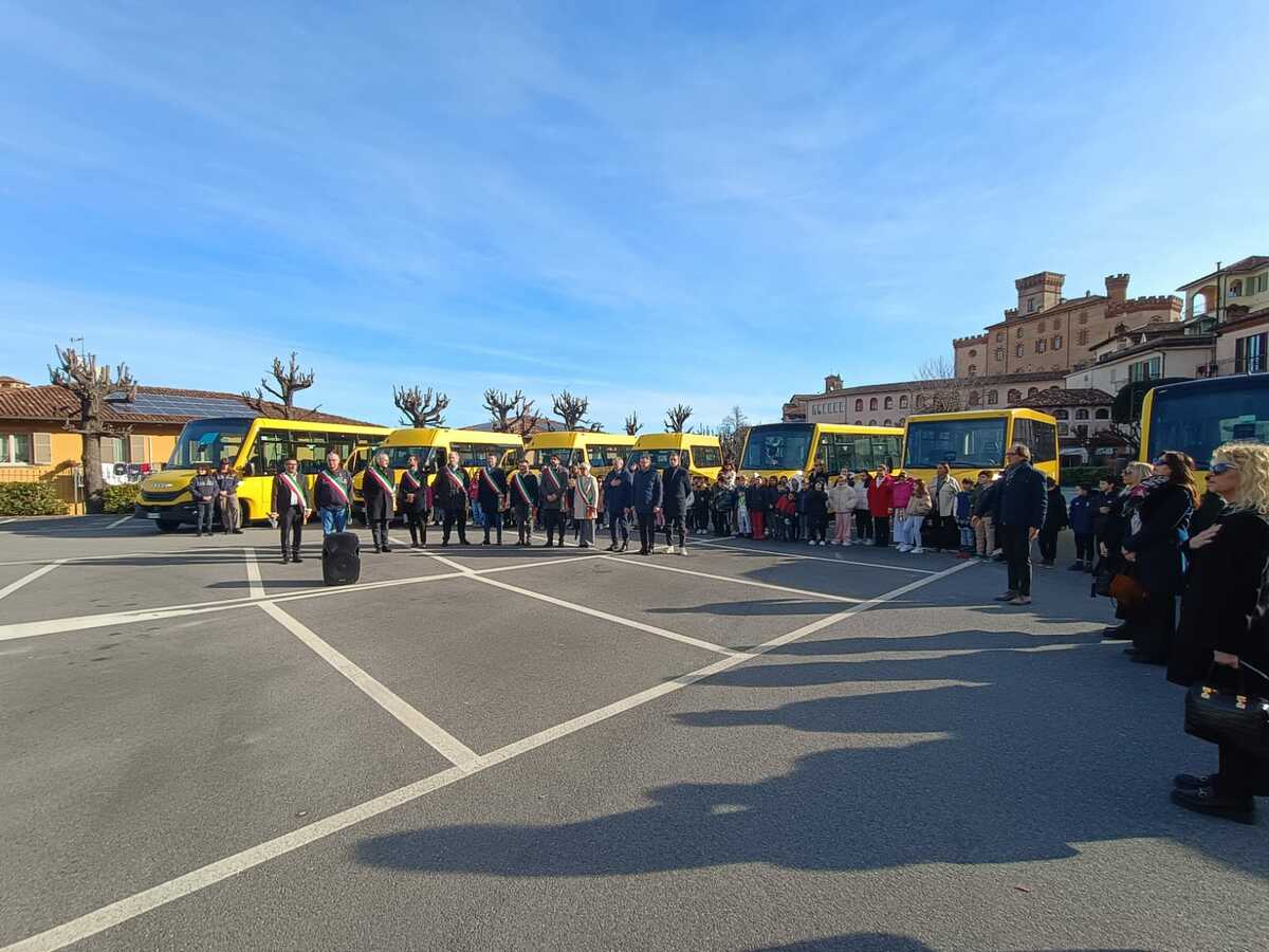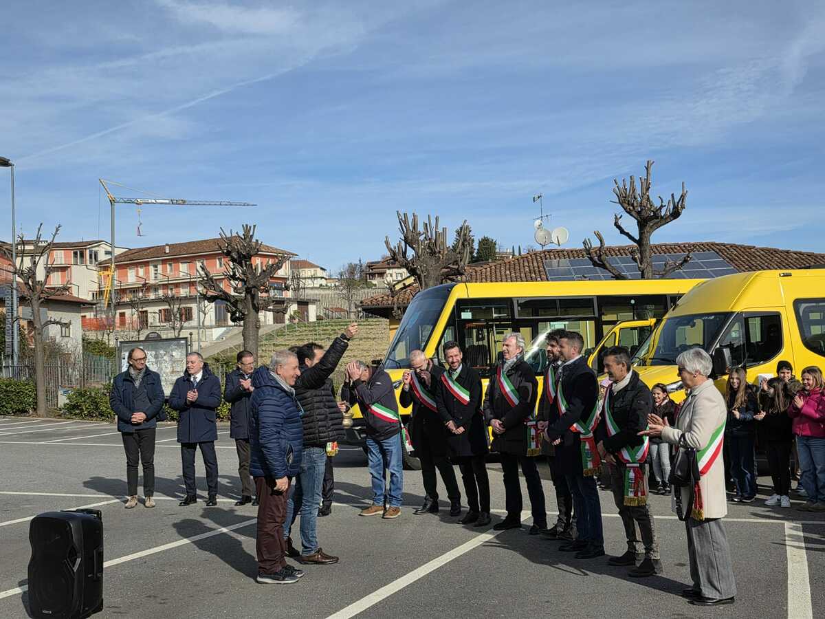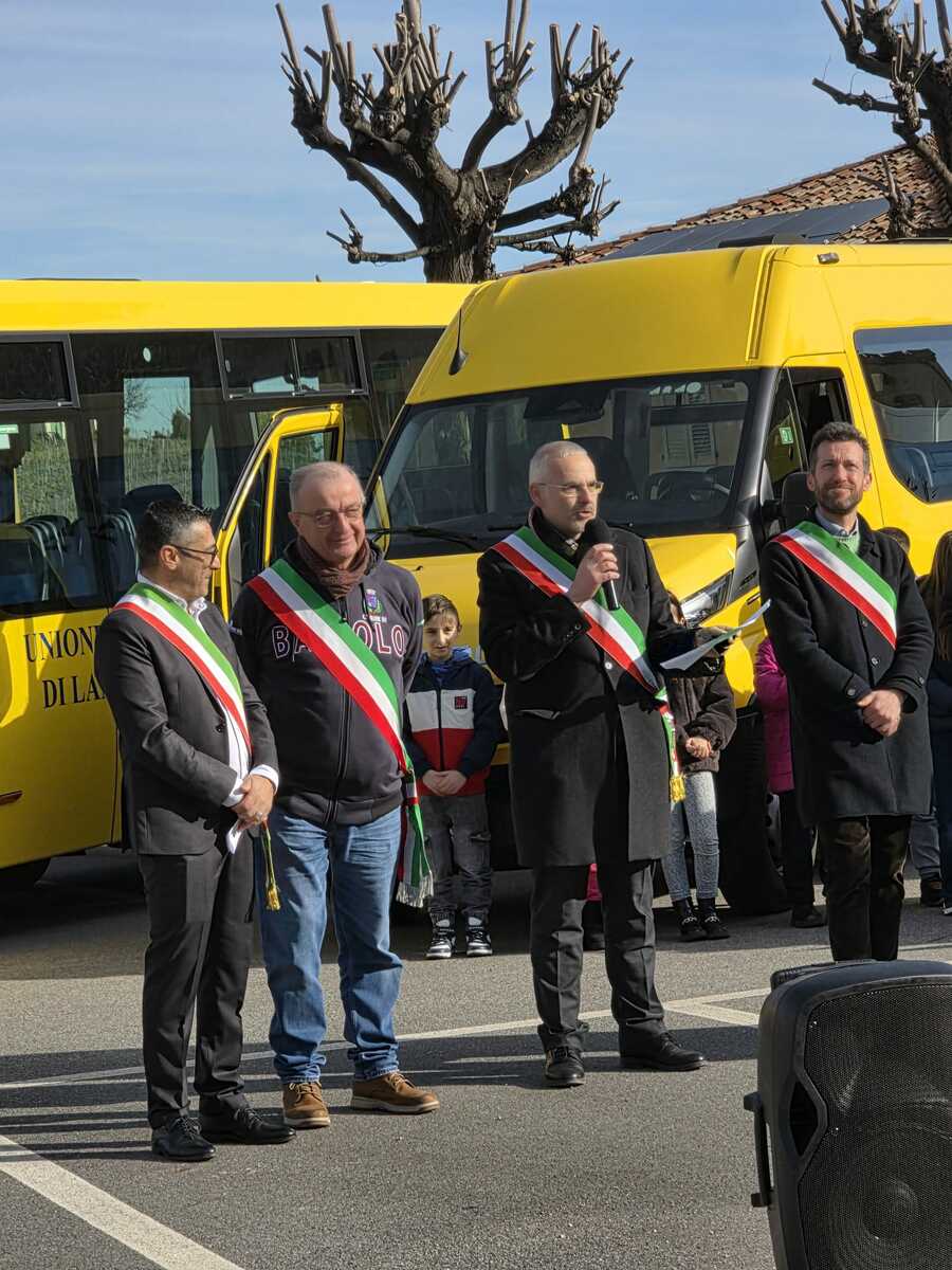 Si è svolta in Piazza Colbert, a Barolo, l’inaugurazione ufficiale della nuova flotta di scuolabus destinata ai Comuni dell’Unione Colline di Langa e del Barolo (Barolo, Castiglione Falletto, Grinzane Cavour, Monchiero, Monforte d'Alba, Novello, Roddino, Sinio), insieme al Comune di Roddi, uscito dal 1°gennaio. Una cerimonia partecipata, segnata dalla presenza compatta delle amministrazioni locali, a conferma di un percorso costruito in modo condiviso.