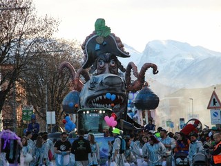 Nella categoria Carri allegorici, il primo premio è stato assegnato ex-aequo a Scalenghe-I Desbela con “Appesi a un filo” e a Mondovì-Fiori di Bambù con “La danza delle coscienze”, due opere capaci di colpire la giuria per forza espressiva e messaggio trasmesso. Da segnalare la folta partecipazione di Scalenghe, da tempo affezionata a Mondovì, che ha sfilato con 650 figuranti.