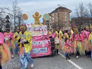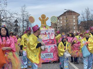 Carri allegorici e gruppi mascherati, partendo da via Ortigara, hanno sfilato in corso Alpi, via San Bernardo e corso Europa per raggiungere poi il palco in piazza Monteregale.