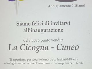 Cuneo si prepara a una notizia che farà battere il cuore di tutte le mamme, i papà, le nonne e gli zii della provincia: La Cicogna di Busca arriva anche nel capoluogo della provincia! Dopo anni di tenace lavoro, soddisfazioni e sorrisi nello storico negozio di Via Umberto I a Busca, dove generazioni di bambini hanno trovato l’outfit perfetto dalla nascita fino ai 18 anni, Giovanna e Michele decidono di allargare le ali e di portare la loro passione – e la loro inconfondibile selezione – anche a Cuneo.