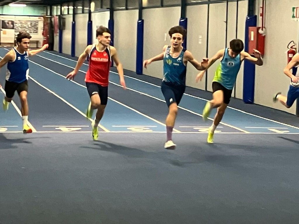 Samuele Ternavasio (Atl. Fossano ’75) sprinta più veloce di tutti sui 60 metri e taglia il traguardo in 7.37 (primato personale migliorato di circa 3 decimi). Alle sue spalle Diego Buffa (Atl. Pinerolo) con 7.51 e Lorenzo Li Pira (Safatletica) con 7.53.
