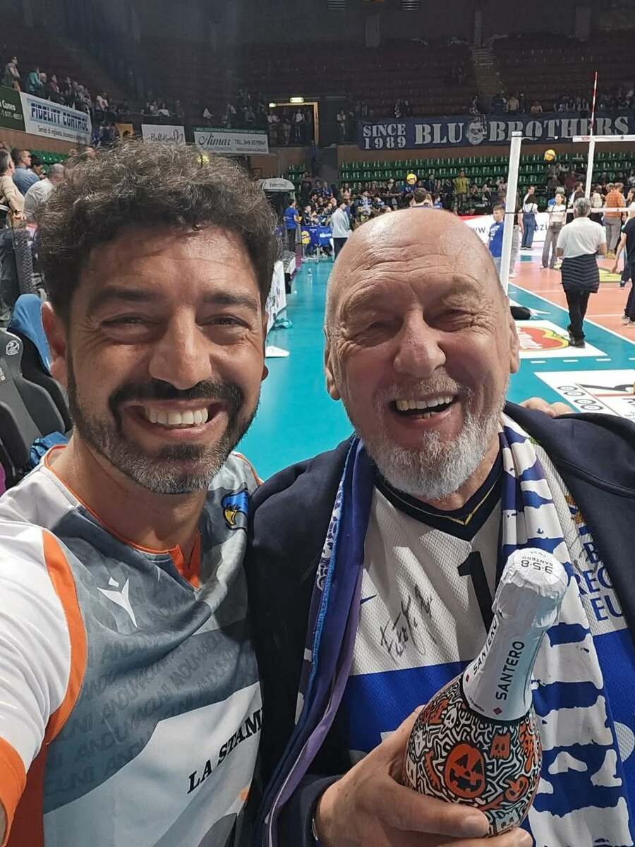 (Salvatore Giaquinta con il figlio Sergio al palazzetto di Cuneo)