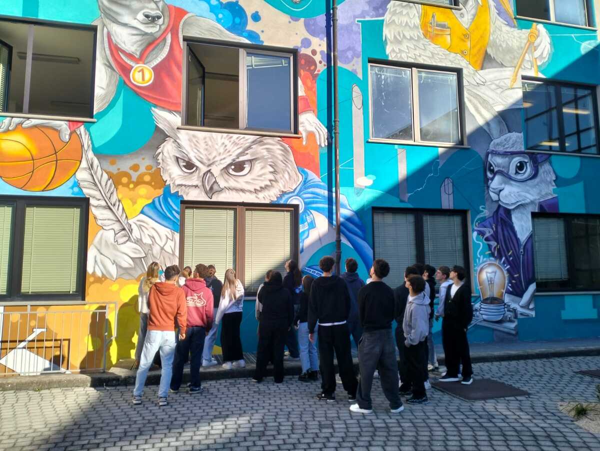 La scelta del soggetto è passata anche attraverso il coinvolgimento degli studenti, con un contest interno che ha raccolto idee e proposte. Successivamente sono entrati in scena gli artisti SketchMate: Pierluigi Puppato ed Emanuele Mannisi, in arte Mr Deep e Orma il Viandante, che proprio nei giorni di sospensione delle lezioni hanno lavorato alacremente per completare l’opera in tempo e trasformarla in una sorpresa per i ragazzi.