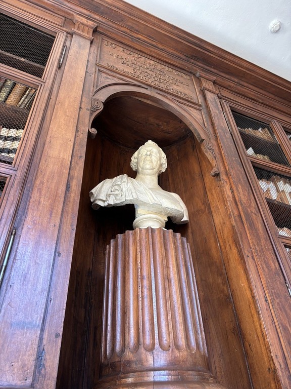 La riqualificazione dell’edificio ha incluso anche il restauro dello scalone con gli affreschi geometrici risalenti al '700 e quello effettuato sui mobili, come sulla grande libreria che raccoglie i volumi di Bodoni, ai quali si è aggiunto il dono della dottoressa Gisella Bressy, un cassettone antico appartenuto ad un antenato Giovanni Battista Bressy, funzionario di Napoleone, benemerito sotto prefetto di Saluzzo.