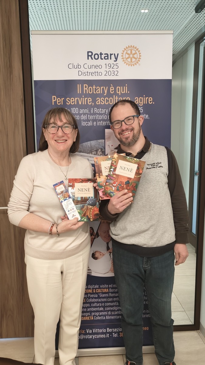 La consegna dell’attestato simbolico è stata effettuata da Nives Forza, socia del Rotary Club Cuneo 1925 e da sempre vicina all’Associazione Amico Sport. Autrice di favole per bambini, Nives Forza sostiene concretamente l’associazione devolvendo interamente ad Amico Sport le donazioni raccolte attraverso i libri da lei scritti e pubblicati, trasformando la magia delle storie in un gesto di solidarietà reale e continuativo.