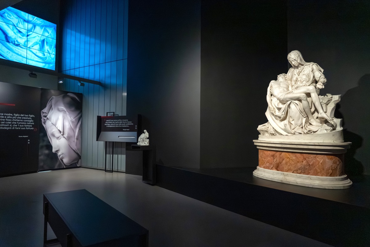 Il percorso espositivo, incentrato sul calco della celeberrima Pietà di Michelangelo Buonarroti, accompagna il visitatore in un viaggio che dalla Basilica Vaticana arriva nel cuore di Alba, offrendo uno sguardo approfondito sull’opera e sul suo valore storico, artistico e simbolico. Un racconto che intreccia storia dell’arte, conservazione, accessibilità e attualità, restituendo alla scultura una dimensione viva e contemporanea.